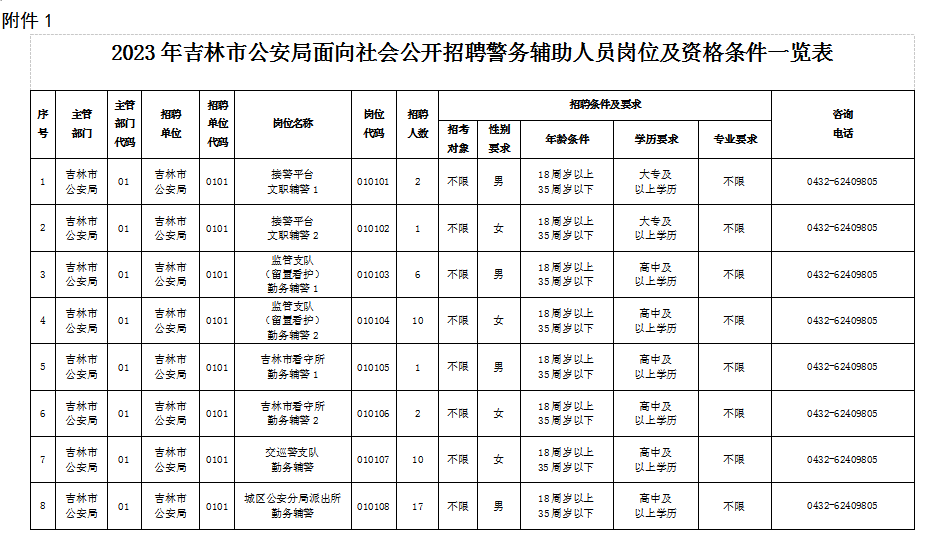 1.2023年吉林市公安局面向社会公开招聘警务辅助人员岗位及资格条件一览表