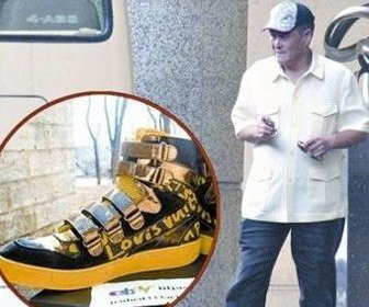 新潮棒球帽,大直径腕表、横纹T-shirt,“潮”得令人侧目,尤其是脚上的一双翠绿色LV高帮跑鞋,引人注目。此鞋零售价高达980美元。