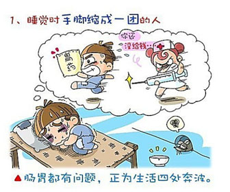 1.睡觉时手脚缩成一团的人:肠胃都有问题,正为生活四处奔波。