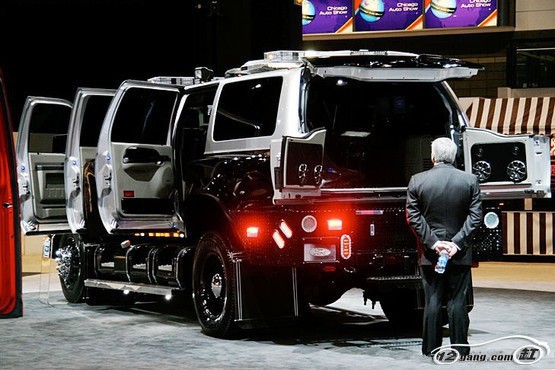 该车是由美国Alton Trucks公司基于福特 F-650 Super Duty皮卡打造的超大尺寸SUV,该车全车重量超过5吨,共有7个车门。而发动机则为Caterpillar的7.2L发动机,最大功率233马力。