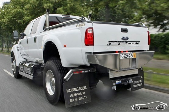 车型简介:作为Alton超大SUV的原型车,福特F-650 SuperDuty在越野领域也是一款超级车型。该车配备一款6.7L排量6缸康明斯柴油发动机,最大功率325马力,最大扭矩800牛米。而与之相匹配的的是6速变速箱和卡车所使用的气压制动系统。非承载式车身和巨大的轮胎保证了F650的越野性能,高达1.11米的轮胎直径则确保了其道路通过性。而与巨大的车身相配的是F650的超大油箱:达到590L。