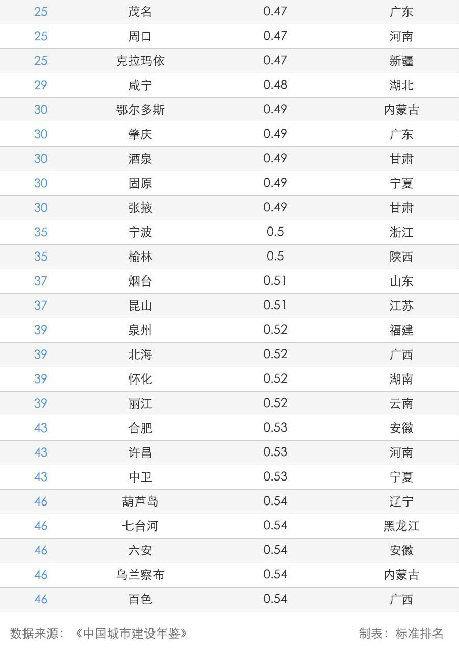 我们的《中国大陆城市“鬼城”指数排行榜(2014)》最终选取了排名靠前的50个城市,这些城市基本符合我们对于“鬼城”“空城”的判定标准,即城区人口与建成区面积的占比均低于0.5或稍微高于0.5,也意味着中国未来可能会出现近50座“鬼城”。当然,这只是成为“鬼城”“空城”的理论数值。